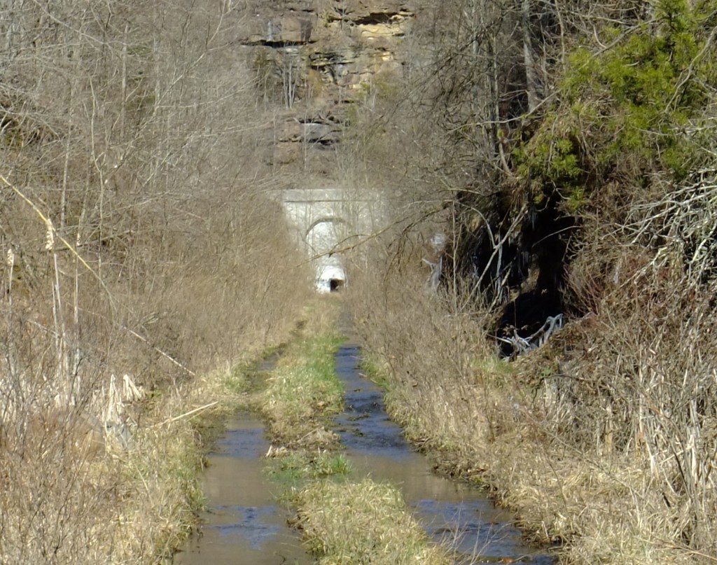 Looking north through these two short (this one is 308′, the yonder one is 236′) tunnels crossing a bend in the Clinch River (36.709679N, 82.646909W) in Scott County VA. As I’ve mentioned before, the date there is when this tunnel was faced up. The line blasted through in the early 1900s. About a mile up the track, at Starnes Bend, is Starnes Tunnel. If you backtrack for about seven miles, you’ll hit the Clinchport Tunnel in the Town of Clinchport.