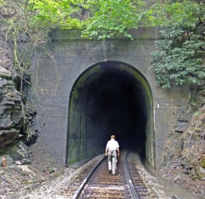 Btw, the Guest River Gorge trail is a great hike and there’s even one small tunnel on the way (Swede tunnel). It’s not far down the trail, but it’s a little over 5 miles to the Clinch River from the trailhead, it’s a long, long 5 miles back up. Each mile is marked with a sign and, as you’re coming back up, the signs seem to get farther and farther apart. We’ve done it on bikes and on foot. Bikes are recommended, believe me. Or a helicopter.