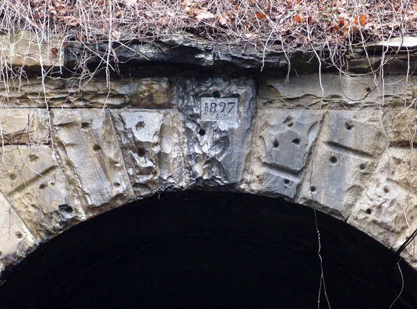 This is the last tunnel on the line coming out of Knoxville. As I’ve mentioned before, the Knoxville Cumberland Gap Louisville railroad company blasted out this tunnel in 1888-1889, with a grade going up to the more or less center of the tunnel on both sides, so the cross-section of the mountain would reveal a tunnel that looks like an inverted “V”. Smoke had a tendency to collect at the top and make breathing difficult for crews and passengers. Then, to add to the woes, the tunnel collapsed on July 4, 1894, and again in 1896. Engineers didn’t like to go into the tunnel, so they’d push a string into the tunnel and have another locomotive pull it out from the other portal. Passengers had to take a wagon ride through the gap. This wasn’t a good situation. When L&N gained control of the tunnel (KCGL had gone bust in 1892), they did a complete refurb ending in 1897, which is the date on this portal (this is mostly from “History of the Louisville & Nashville Railroad” by Maury Klein). It’s also the date that “Dracula” by Bram Stoker, was published. When the tunnel was begun, the Buffalo Soldiers were active in the West, just 7 years after the gunfight at OK Corral.
