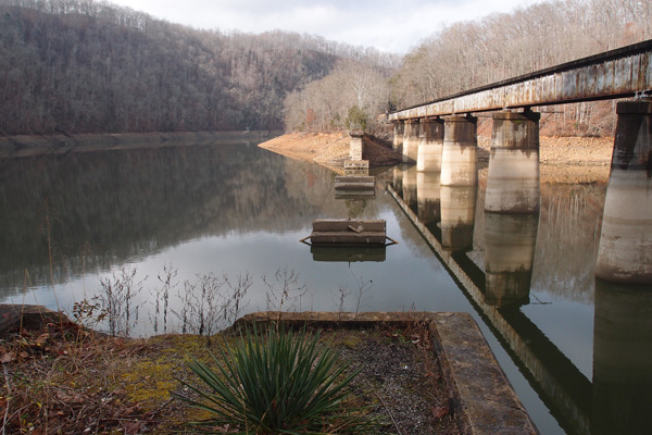 We’re now a little over 191 miles from Elkhorn City. We’re at the southernmost point of the first of The Loops, about a quarter mile past Quinn Knob tunnel. 3rd Washburn is a curved tunnel, 915′ long. This is the western portal at 35.839883, -82.037946. The date on the lintel is 1913. Snipes is next, but, as I said, we’re heading down to Norris Lake for an interesting series of tunnels (if you’re into tunnels). We’ll get back here real soon. The tunnels will still be here.