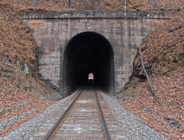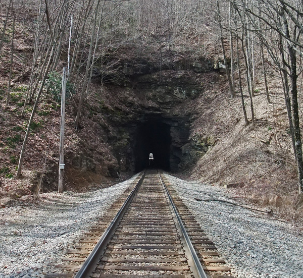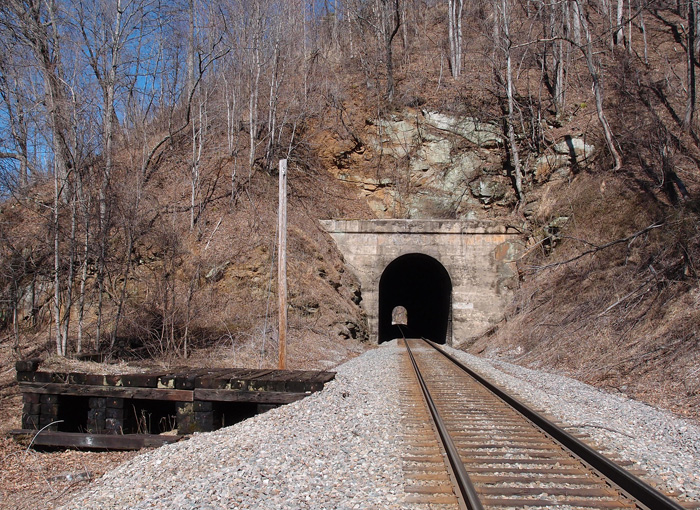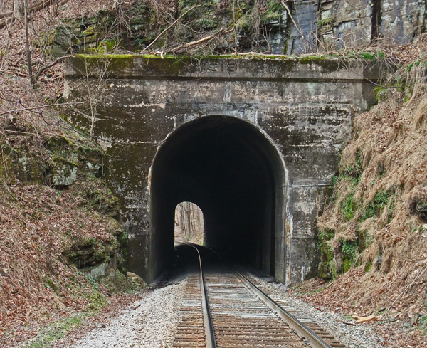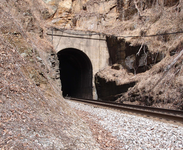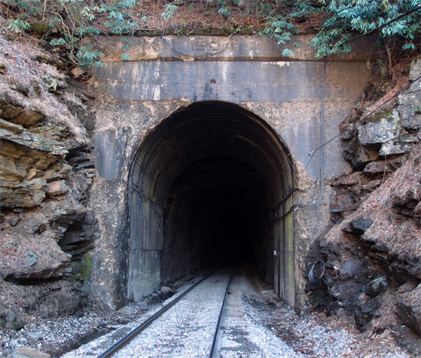 Just about 770′ to the south of 1st Rocky is 2nd Rocky. It’s 757′ long. This south portal is at 35.865584, -82.004314. The date on the refurb portal is 1918. You have to get permission to cross private land to get to both 1st Rocky and 2nd Rocky and there are two ways to get to them after that. Fairly easy. 4th Rocky is a long trek away. Believe me.