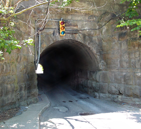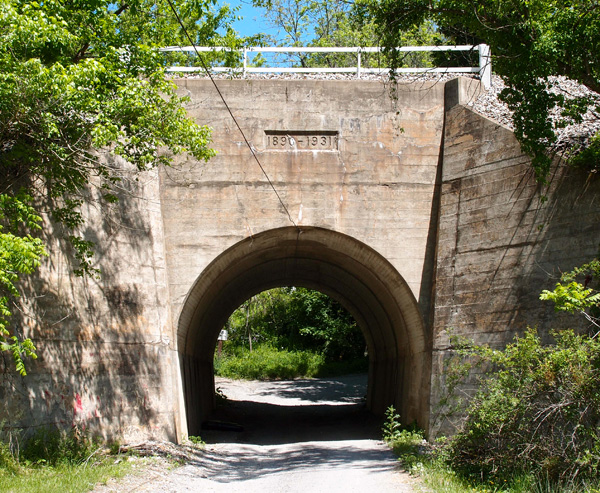 back at the highway through a 194′ railroad underpass. Not dated. This goes