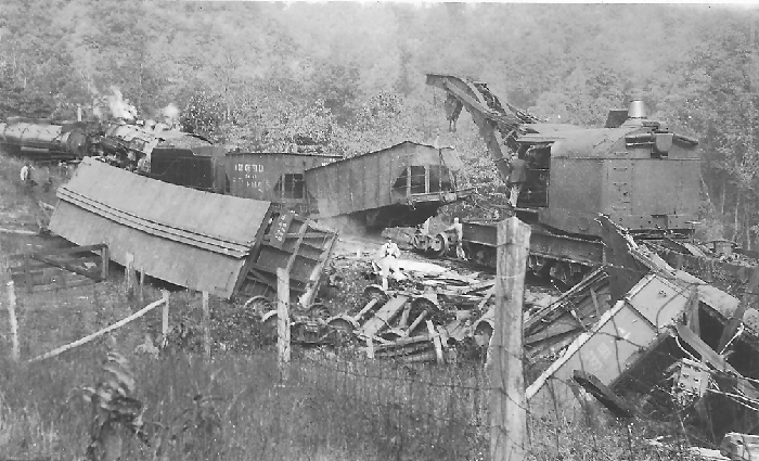 These three are real photo postcards; that is, one-off postcards made by Kodak from negatives sent in by camera owners. The photo of the N&W hopper and the two crew cars can be dated to between 1904 and 1918, as can the shot of the steam locomotive. The one of the crane resetting a CC&O derailment is from the 1918-1930 period. There is no other identifying information on any of these cards. I think they’re fascinating and I snapped them up as soon as I saw them.