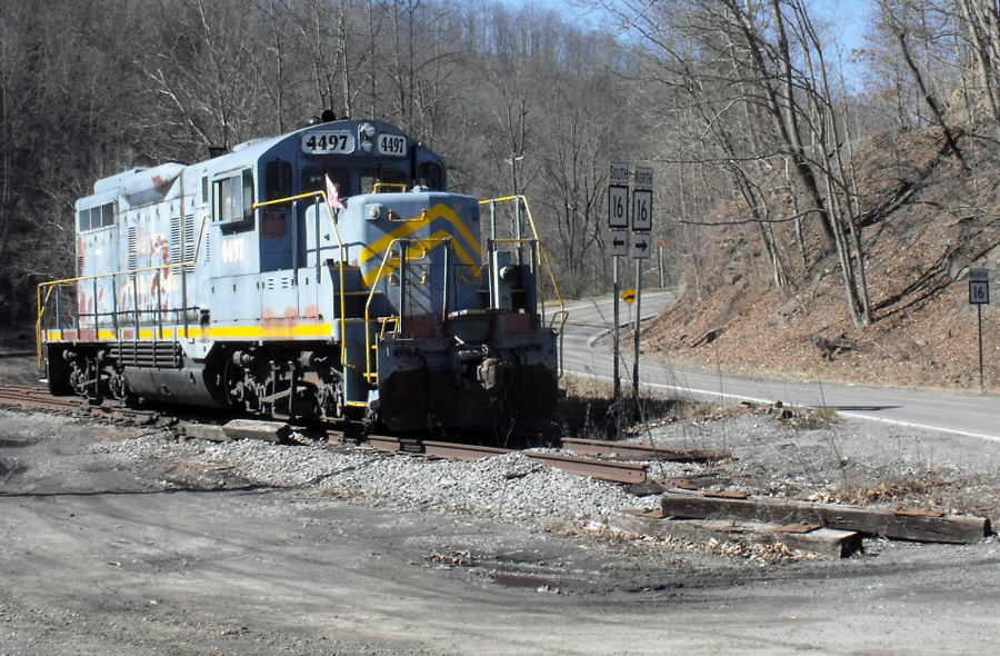 The former Northern Ohio & Western 4497 EMD GP9, out of service near Bishop WV in March, 2016.