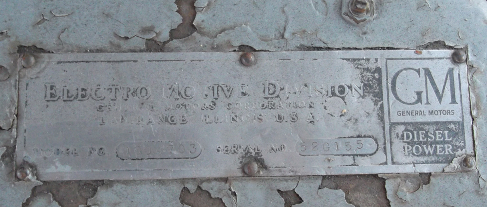 This is the registration plate on the back switcher (the front one was gone). It’s been smoothed down over the years, but I think the model number is D904703 (that “D” could be a “O”) and the serial number is 52G155.
