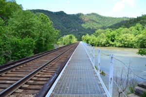 Lancefield East angles across a shoal in the French Broad River. Keep going on this and you’ll leave Cocke County TN and hit Madison County NC in just a few miles. The trestle is 960′ long, with a handy walkway provided. I’ve been on a walkway similar to this when a train came by. I was safe enough, but that much power and sheer tonnage was certainly impressive. And loud.