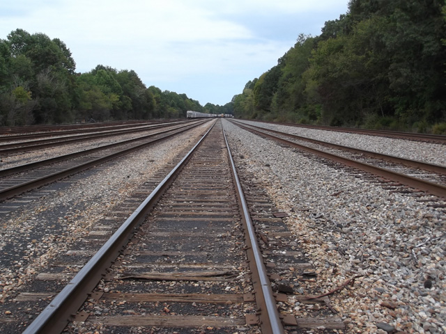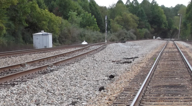This is Norfolk Southern’s Yuma yard looking east (top photo) with the Smith signal unit to the left. Bottom photo is looking west. This yard, 3 miles west of Frisco yard, is mostly used for storage now. It is .86 mile long with seven tracks. Thanks to the CSX Transportation Historical Society website for information on this yard.