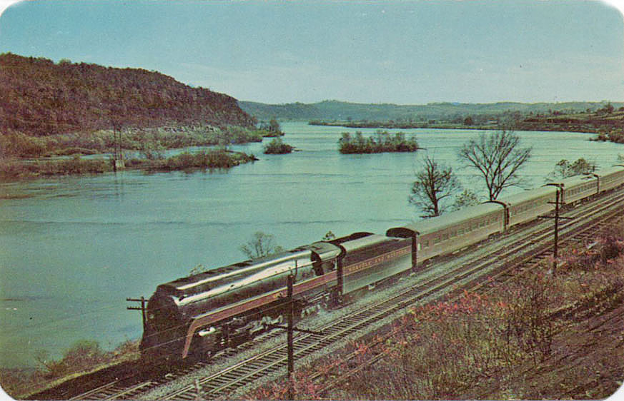 Norfolk and Western Railway’s streamline, all-coach, daylighter along New River in Virginia