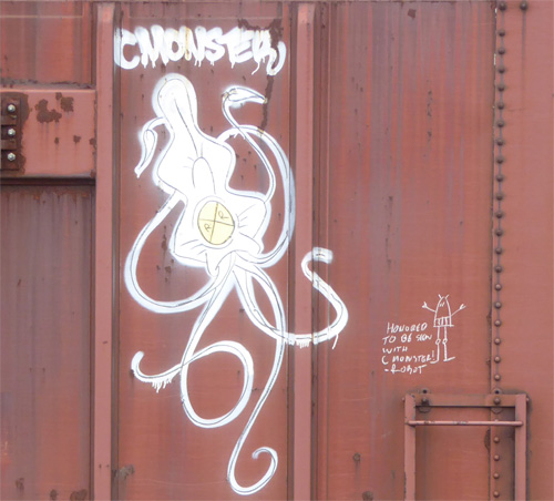 The caboose there is open to the public and still retains some features of this crew car, including this advisory (in stencil caps) above the toilet: