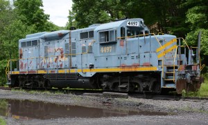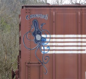 This much-used Jordan Spreader, SBD 774760, was sitting in the eastern part of Kingsport yard back in 2012. I thought it might have been used to clear tunnels of ice. That was fanciful. When I looked it up, I found that the unit is used to dig and clear ditches, regulate ballast and even to plow snow. Sturdy and reliable, and, of course, it’s been replaced by more modern things…so it goes.