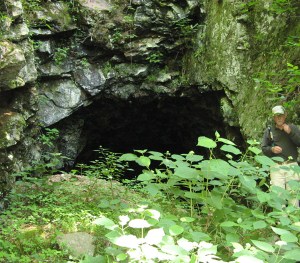 The west portal is partially open, but filled with rather murky looking water. Wonder what lives in there? Anyway, that’s my hiking buddy providing scale for this opening: