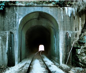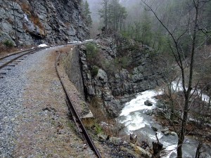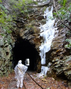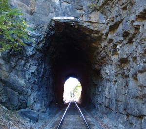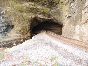This is the last tunnel on the line coming out of Knoxville. As I’ve mentioned before, the Knoxville Cumberland Gap Louisville railroad company blasted out this tunnel in 1888-1889, with a grade going up to the more or less center of the tunnel on both sides, so the cross-section of the mountain would reveal a tunnel that looks like an inverted “V”. Smoke had a tendency to collect at the top and make breathing difficult for crews and passengers. Then, to add to the woes, the tunnel collapsed on July 4, 1894, and again in 1896. Engineers didn’t like to go into the tunnel, so they’d push a string into the tunnel and have another locomotive pull it out from the other portal. Passengers had to take a wagon ride through the gap. This wasn’t a good situation. When L&N gained control of the tunnel (KCGL had gone bust in 1892), they did a complete refurb ending in 1897, which is the date on this portal (this is mostly from “History of the Louisville & Nashville Railroad” by Maury Klein). It’s also the date that “Dracula” by Bram Stoker, was published. When the tunnel was begun, the Buffalo Soldiers were active in the West, just 7 years after the gunfight at OK Corral.