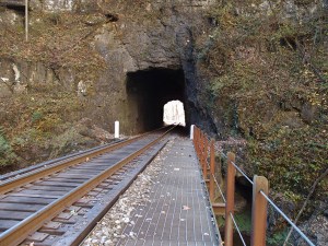 If you’d like to see a great video taken from a locomotive of a trip through this tunnel: